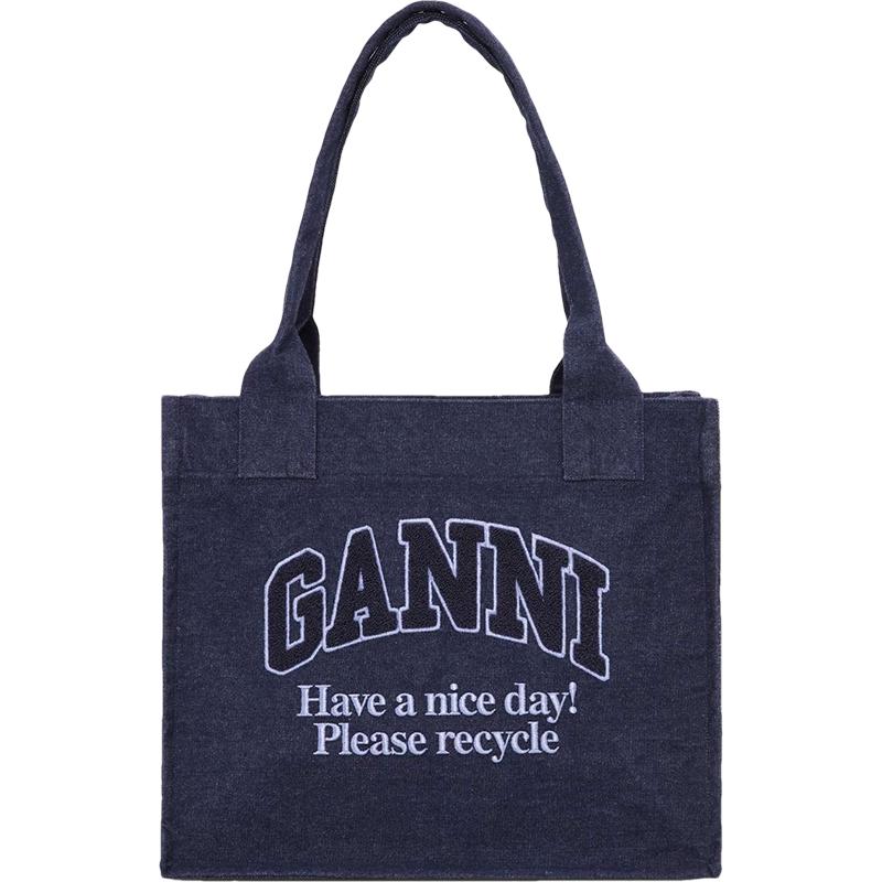 ⭕GANNI女包 海军蓝logo刺绣托特包
