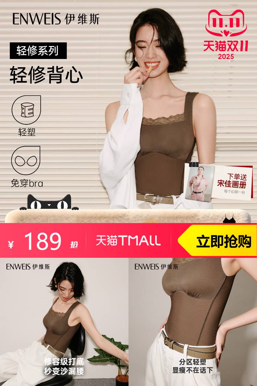 【无门槛9折券抵扣18.5,淘金币抵扣4到手166.5,全店实付满550元送背心,下单送宋佳画册,还有店铺限时红包可叠到手更低】【轻修背心】伊维斯莫代尔带胸垫保暖内衣,超赞~