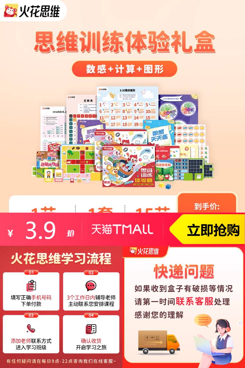 【原价39.9-券36-淘金币0.79=到手3.11】1套学具礼盒+1节真人互动直播+15节思维训练!十多件火花数感图形学具礼盒,从具象体验-形象感知-抽象思考激发学习的兴趣,拓展知识体系掌握丰富的思维方法将孩子的知识、能力、思维三者相互连接。
