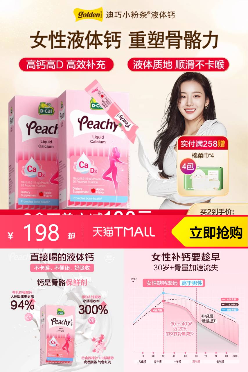 【店铺立减120,加购弹12限时红包,首单减15,叠加88消费劵到手142.29两条】dcal迪巧小粉条女性液体钙柠檬酸钙维生素成年人补钙口服液。钙力全开,迎接新生命! 孕期专享,液体钙吸收MAX 酸甜苹果味,每一口都是享受! 不便秘,好吸收,补钙无负担!