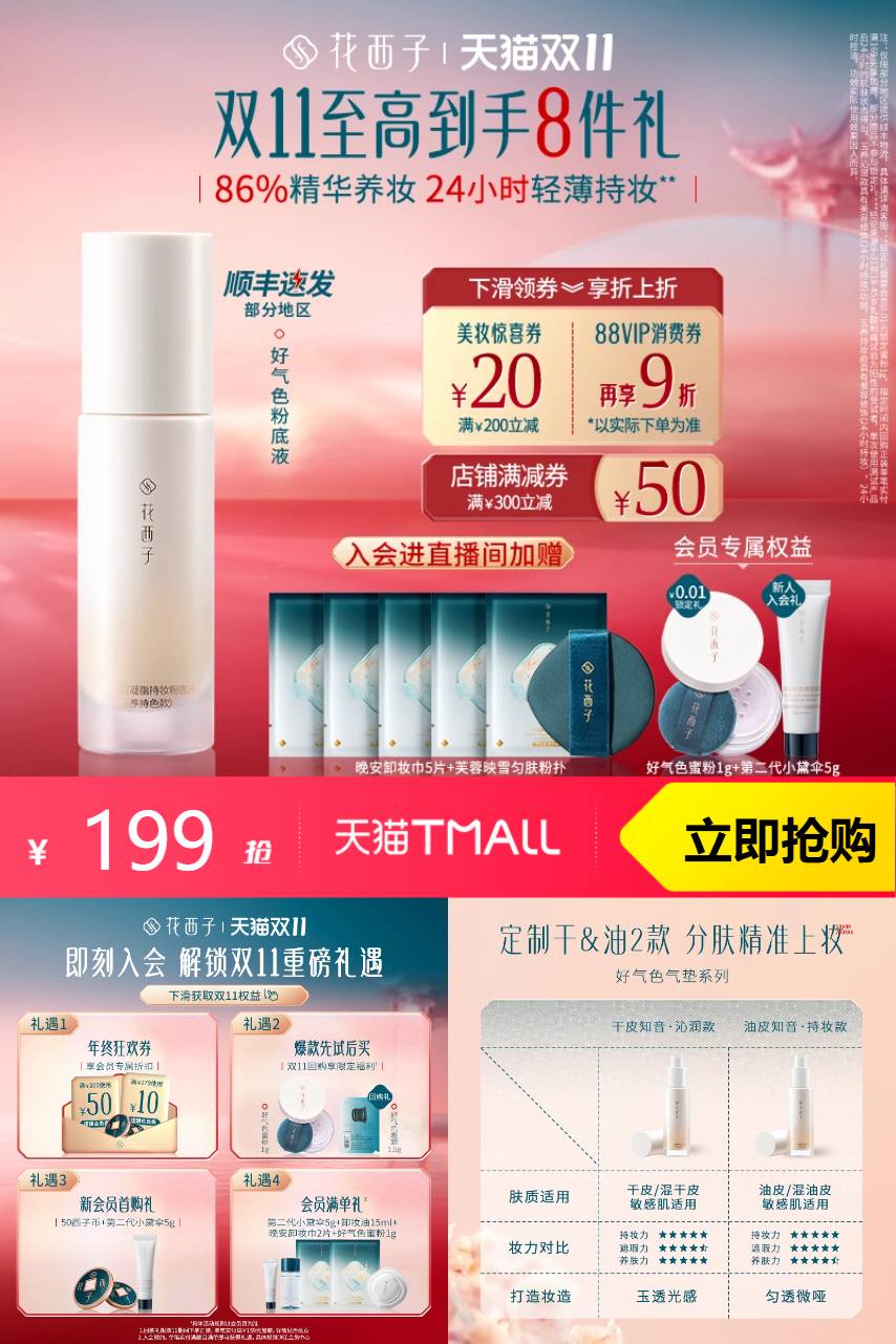 【领券减10元,单品直降37元,淘金币可减14.92元,限时补贴11.38元,到手172.7元,消费券到手155元。店铺凑300减50到手130元,叠加美妆惊喜券到手100元左右。】引光入妆,匀肤焕亮,维稳肌肤,修护屏障,以色修色,气色有光,长效锁色,轻透持妆!