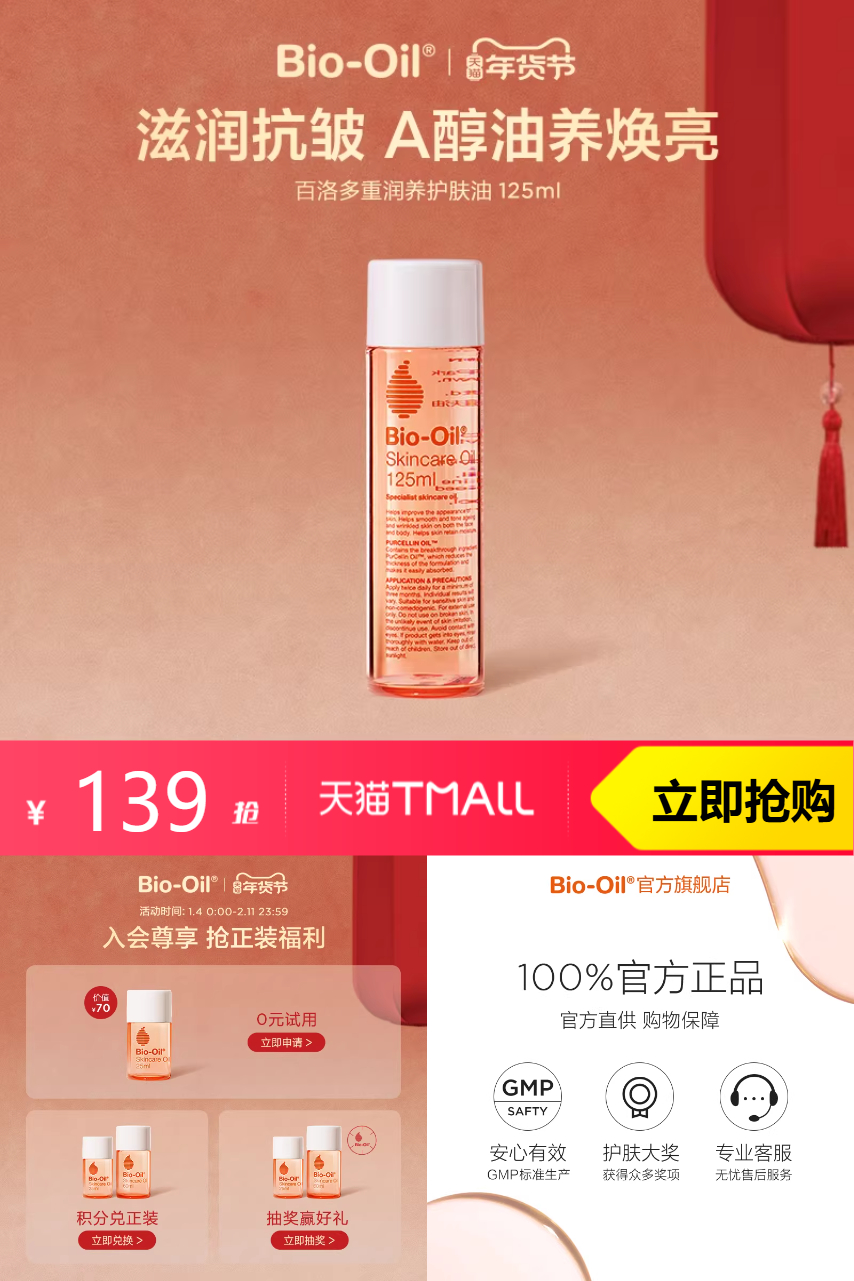 【淘金币抵扣5.25,凑单到手117.06】百洛润养护肤油精华油抗皱保湿125ml ,弹润焕亮,润泽抗皱,强韧肌肤润抚伸展纹路~