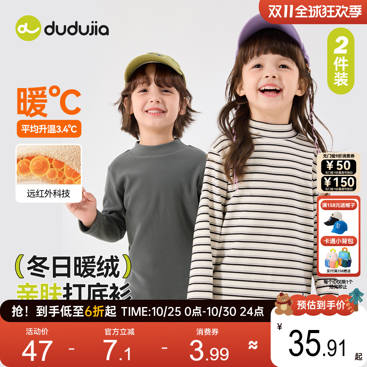推荐:【2件装T恤】儿童打底衫嘟嘟家男童长袖女童宝宝冬季衣服童装上衣