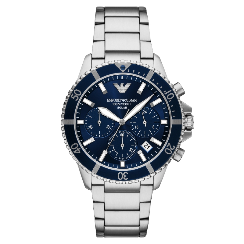 推荐:Armani阿玛尼水鬼男表三眼计时太阳能手表