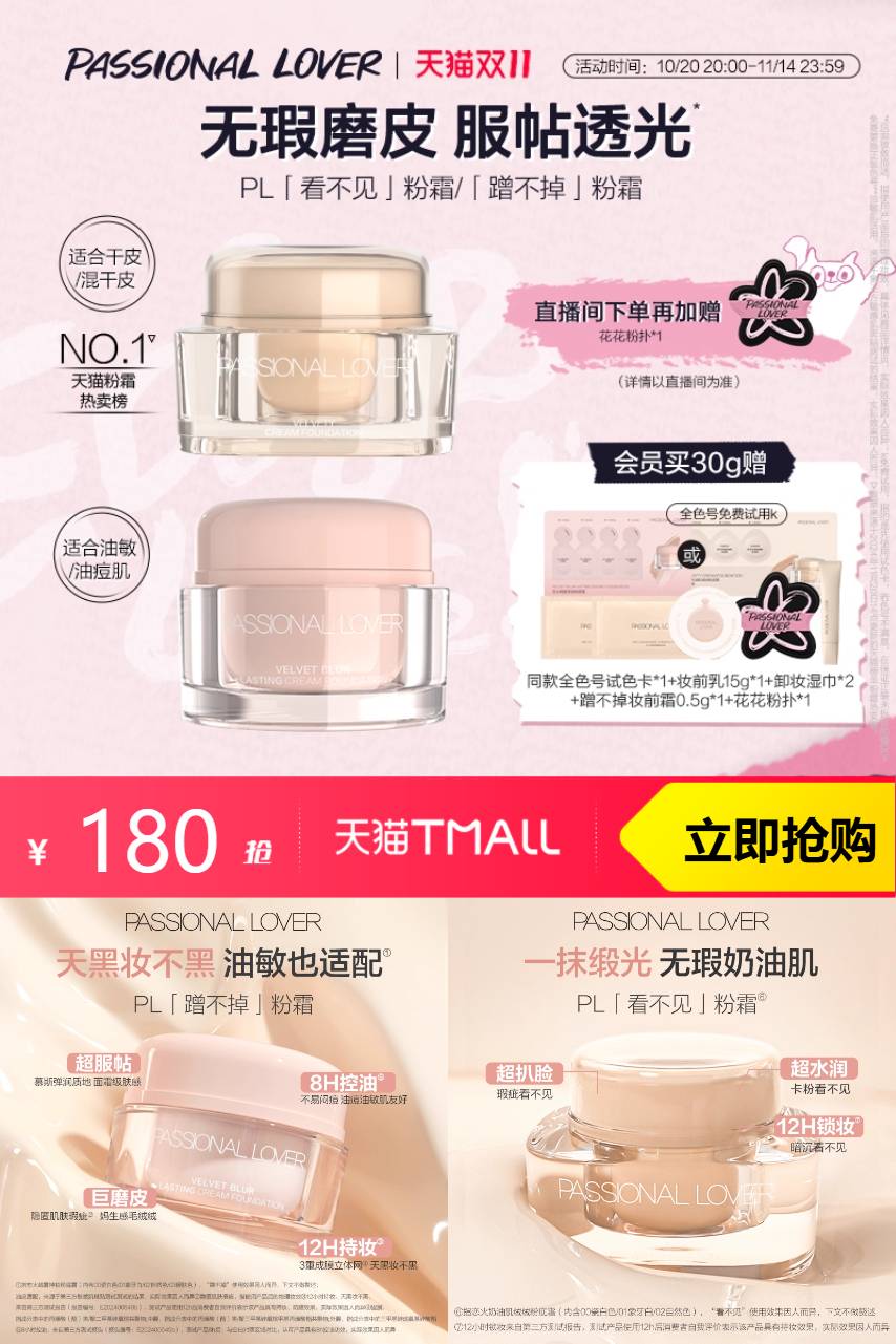 【50%,叠加淘礼金6.35+惊喜券200-20+淘金币+消费券到手122.59】【买30g赠同款全色号试色卡*1+花花粉扑*1+同款粉霜15g*1】PL看不见粉霜,一抹缎光,无瑕奶油肌,超扒脸瑕疵看不见,超水润暗沉看不见,「厚厚」粉扑扒脸更遮瑕。