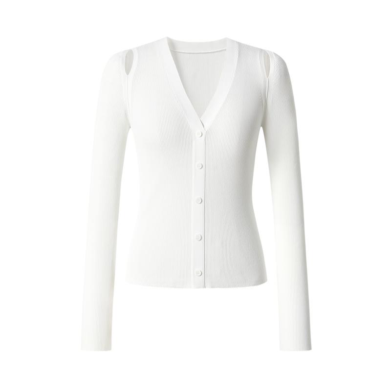 推荐:萨克春装毛衫法式坑条修身v领经典黑白色针织衫女