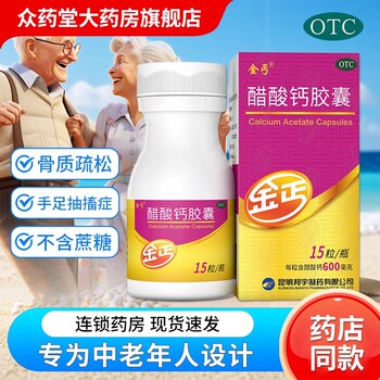 【79.9/2瓶】,金丐醋酸钙胶囊0.6g*15粒孕妇中老年成人补钙骨质疏松预防钙缺失