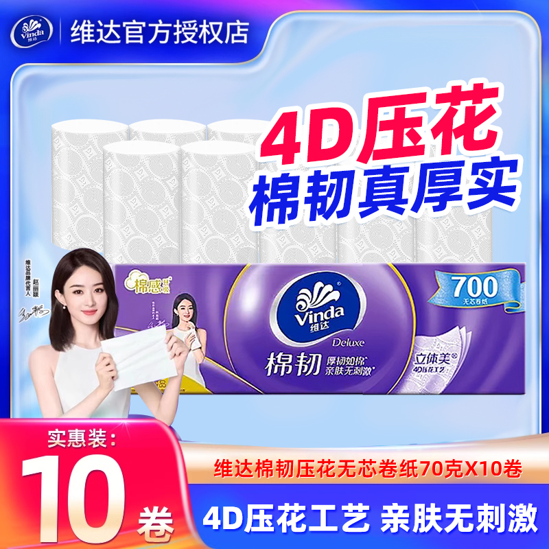 维达卷纸10卷无芯卷纸卫生纸厕所纸手纸学生宿舍用实惠装by
