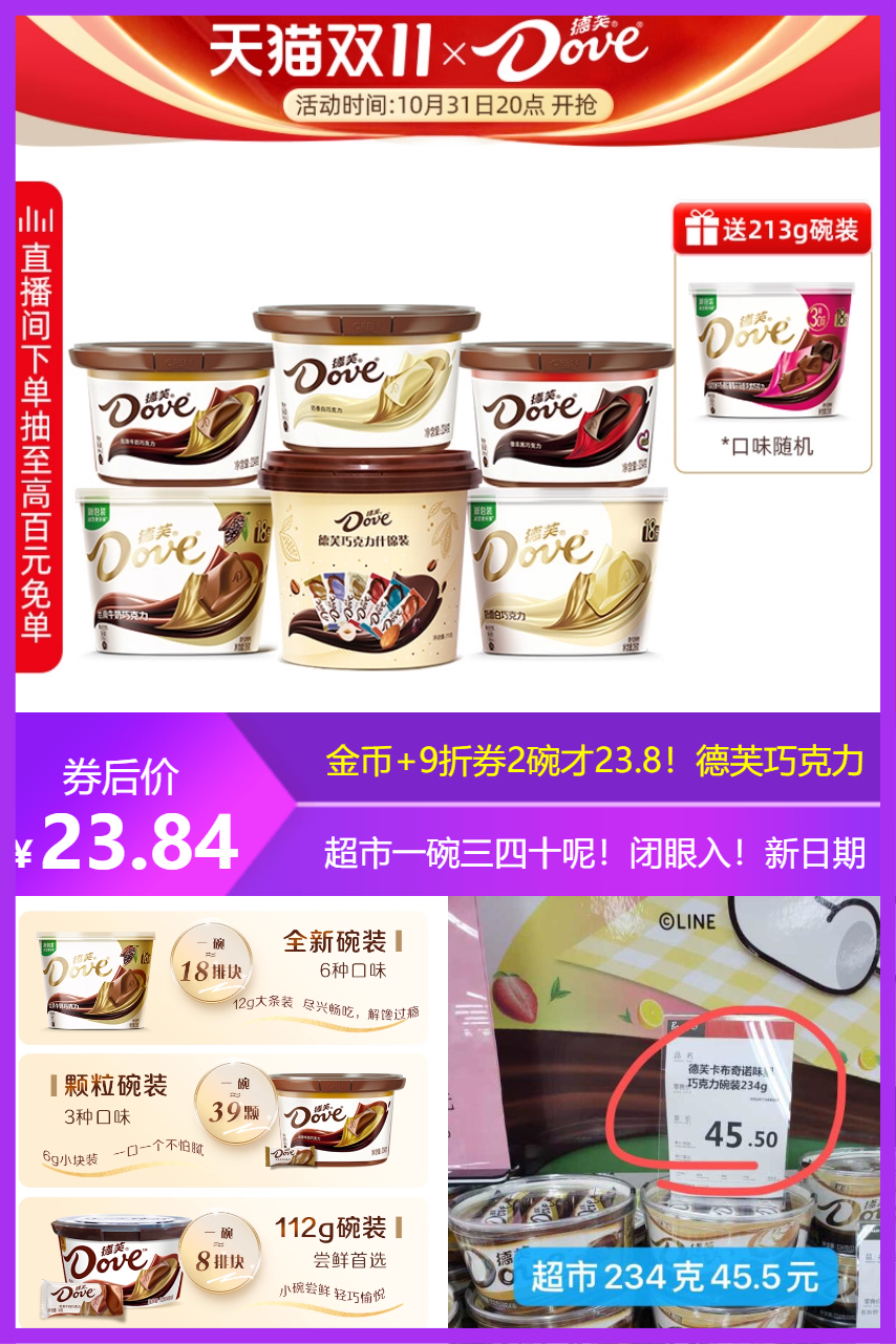 推荐:金币+9折券后12.7/碗!超市45德芙巧克力