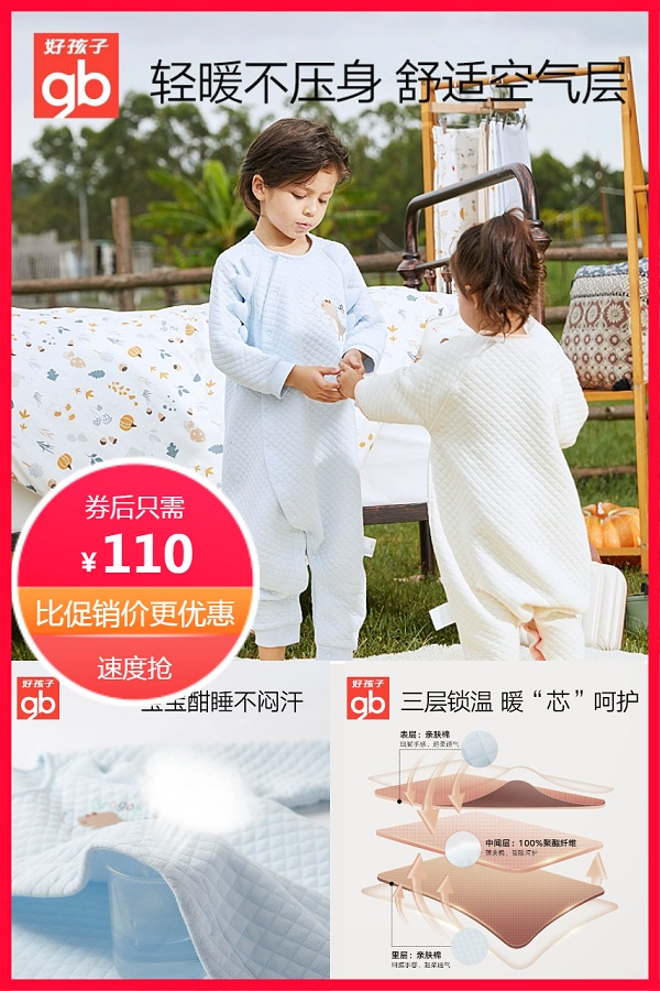 gb好孩子婴儿睡袋来啦!春夏款分腿设计,四季通用,防踢被+防惊跳,宝宝安睡一整晚~轻盈透气不闷汗,A类亲肤材质,宝妈口碑推荐,性价比超高!
