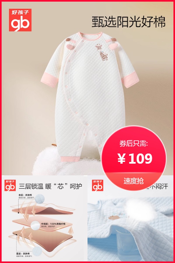 gb好孩子婴儿睡袋来啦!春秋冬三季适用,绗绣工艺细腻亲肤,防惊跳设计让宝宝安睡整晚~分腿设计灵活不束缚,防踢被保暖锁温,宝妈安心首选好物!