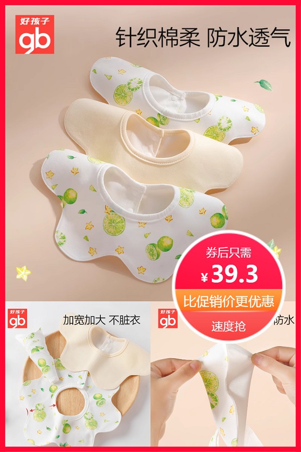 gb好孩子婴儿围兜防水设计,可旋款贴合不滑落,宝宝吃饭口水全搞定~新生婴儿专用,易清洗不闷热,宝妈安心首选好物!