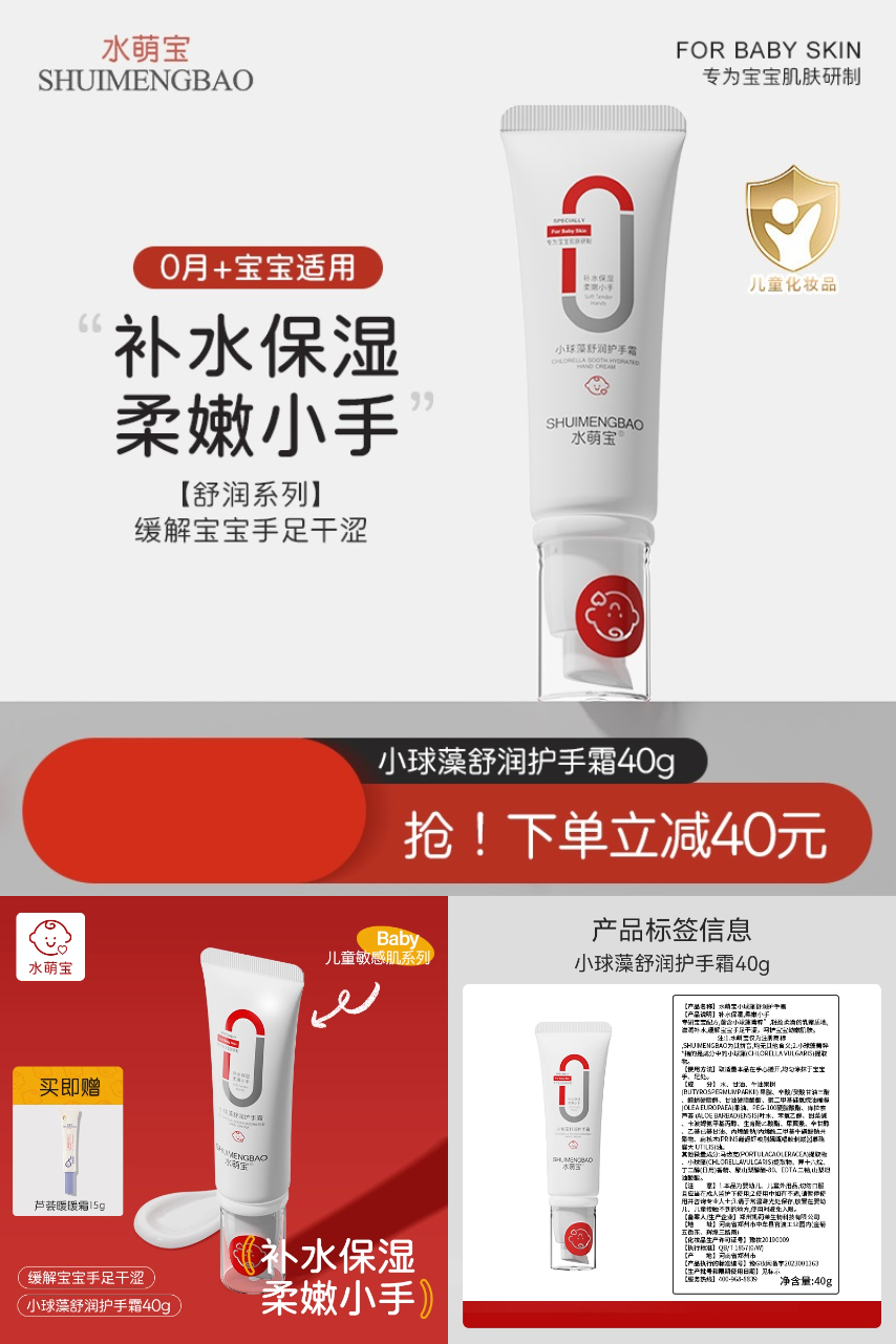 水萌宝儿童保湿护手霜,小球藻精华深层滋润,温和配方专为宝宝娇嫩双手设计~天然成分锁水保湿,秋冬季节缓解宝宝手足干裂,让宝贝的小手每天都水润嫩滑