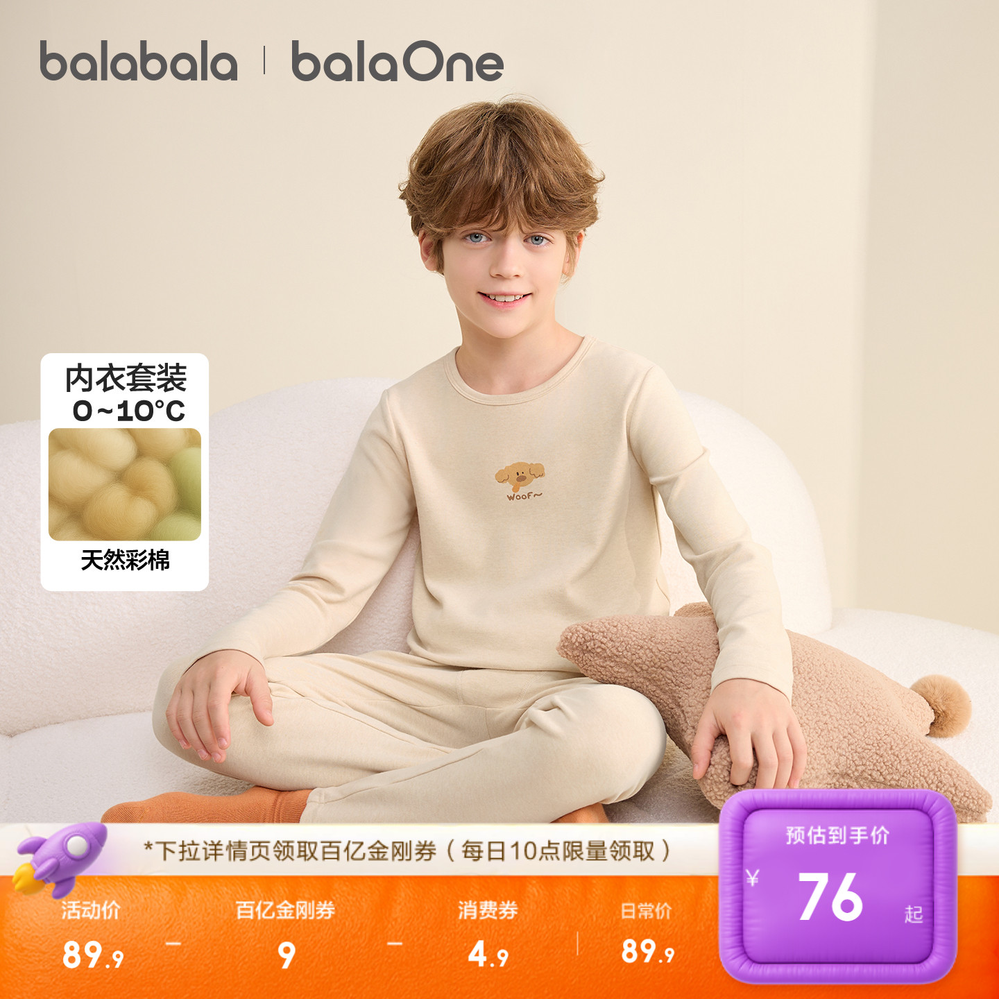 推荐:巴拉巴拉男女童内衣套装儿童秋衣秋裤两件套新款彩棉2025秋冬抗菌