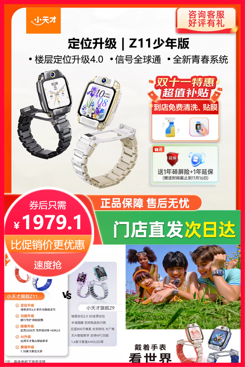 小天才电话手表Z11高清视频4G全网通。定位升级|Z11少年版,楼层定位升级4.0·信号全球通·全新青春系统!