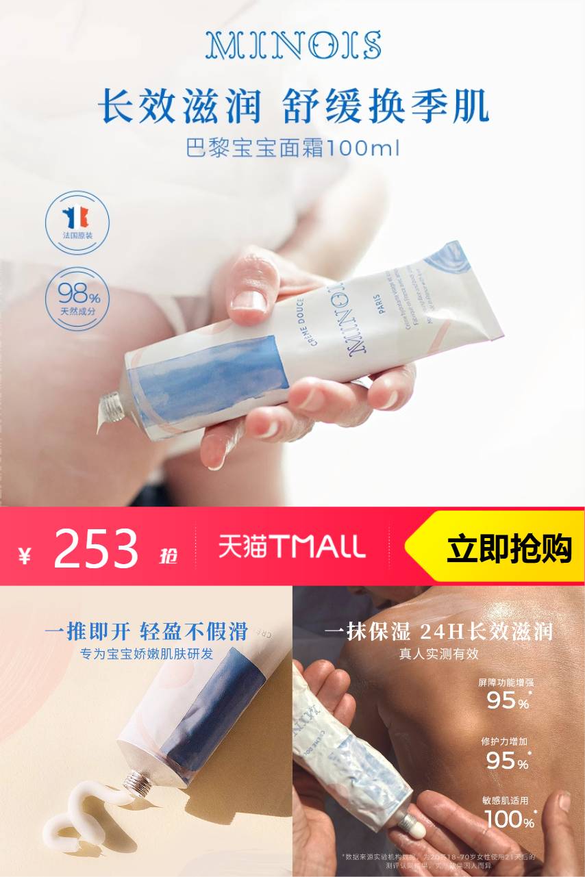 【立减45+淘金币20.86到手232+叠加消费券到手197】minois婴幼儿专用面霜秋冬身体保湿乳,98%天然植萃,温和修护新生肌~