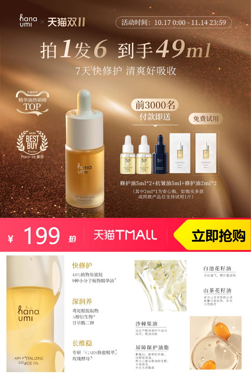【消费券到手179.1,赠精粹油5ml*2瓶+抗皱精粹油5ml】花近敏肌修护精华油小黄油以油养肤30ml,提升清爽度,高纯度甘蔗角鲨烷发酵质地纯净清爽,提升吸收力更易被肌肤吸收~