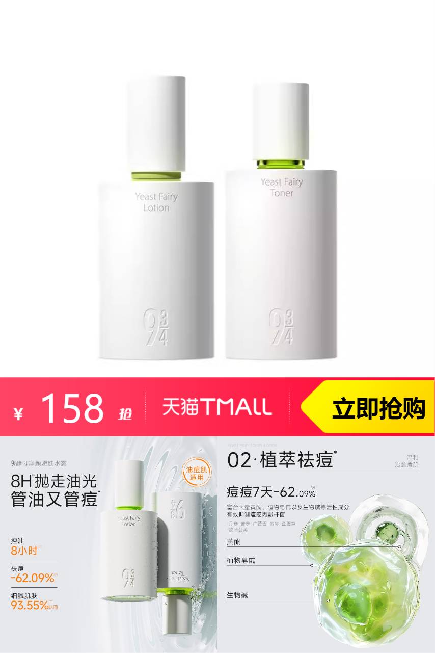 【立减30+店铺优惠10+淘金币6元到手152+叠加消费券美妆券到手更优惠】934酵母抛光水乳控油祛痘清爽油皮油,8H抛走油光,管油又管痘。