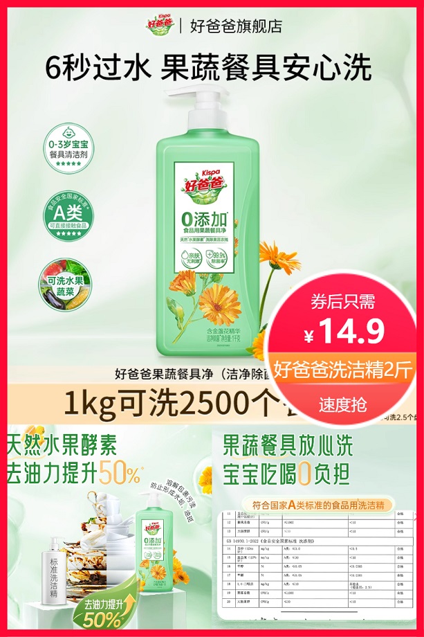 ⭕百补10元好爸爸果蔬餐具净洗洁精1kg