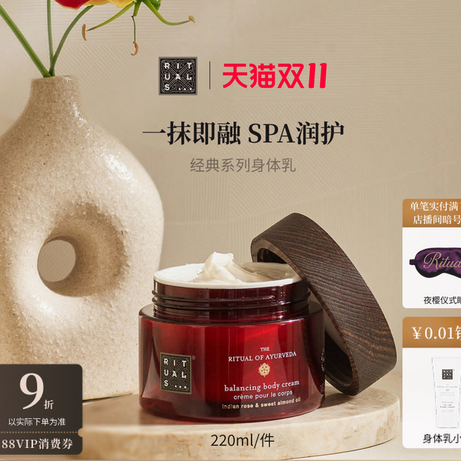 【有2.25元淘金币,叠350-35店铺满减+消费券,88vip到手142.14】Rituals怡式香氛身体乳220ml,超赞!