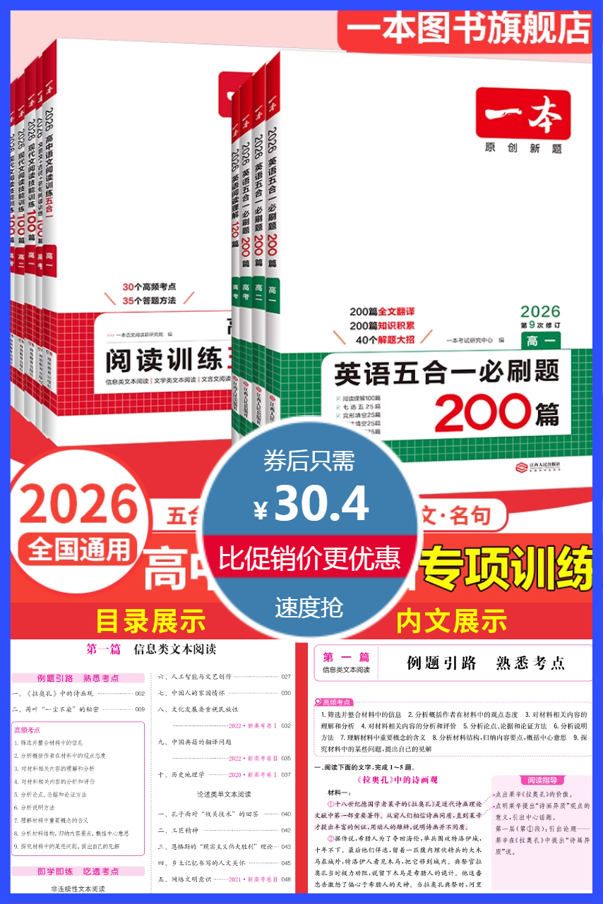 一本高中语文阅读训练五合一,五合一、文言文、诗歌、现代文、名句任选,紧跟高考改革趋势,注重教考衔接,融汇创新题型,系统梳理高频考点,方法详细、高效、实用,涵盖多种阅读文体,三段式”好解析,讲解清晰透彻,做一题会一题
