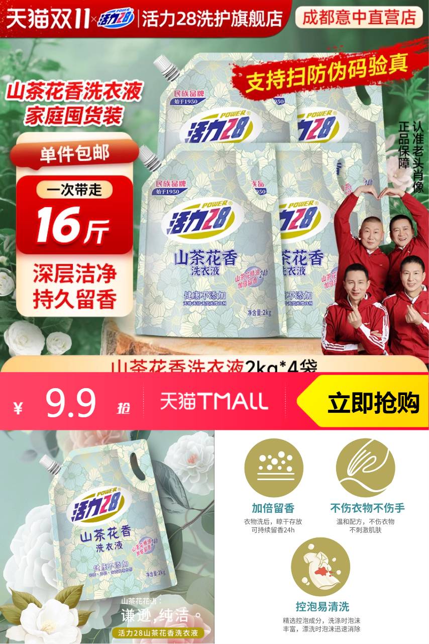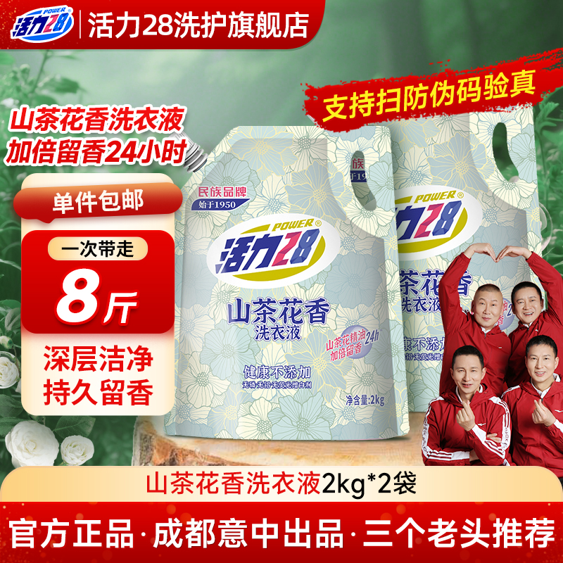 【有1.07元淘金币,叠88vip消费券,到手7.9】活力28山茶花洗衣液2kg*1袋,加倍留香 衣物洗后,晾干存放可持续留香24h,不伤衣物不伤手,温和配方,不伤衣物,不刺激肌肤~