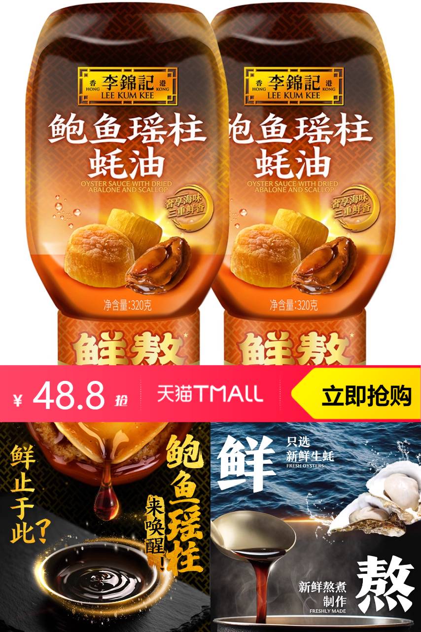 【直降5-商品券2-88vip抵扣2.44-淘金币加补19.79-淘礼金1.95(10点活动以实际领取到手为准)】李锦记鲍鱼瑶柱蚝油320g*2,超性价比~