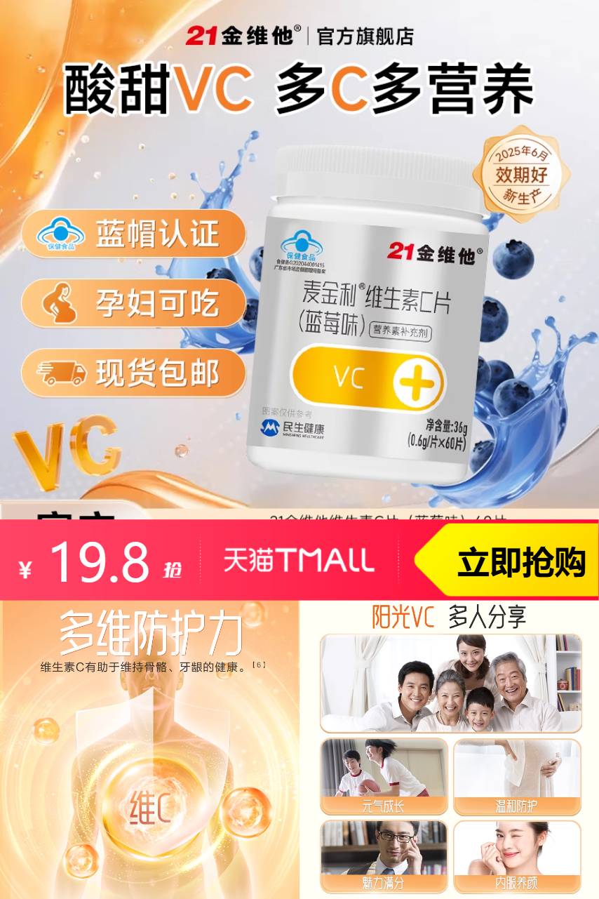 【(1)叠加淘金币减1元,双十一超级红包减0.4元,到手价18.4元。】有淘金币补贴!维生素C是生长必须的!能够增强身体免疫力!对人体的疾病不仅有健康预防的作用,还有治疗的作用