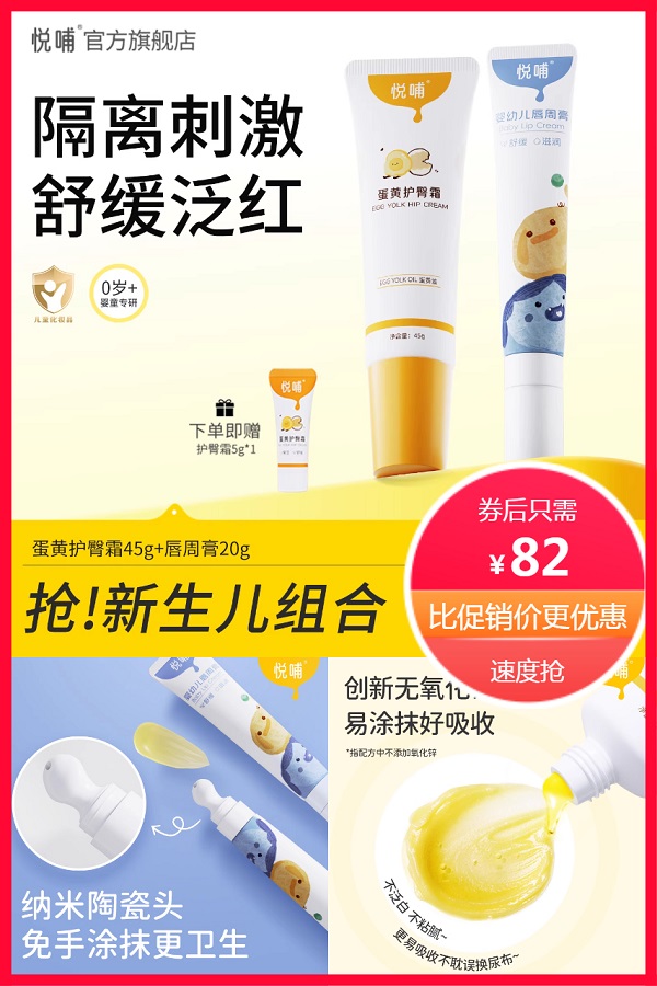 【两支护臀膏!叠加88vip和进店红包到手只要75.53元!还送护臀膏小样5g】悦哺蛋黄油护臀膏组合!天然成分温和呵护,宝宝娇嫩肌肤的安心之选~隔离口水、舒缓红屁屁,宝妈省心必备!