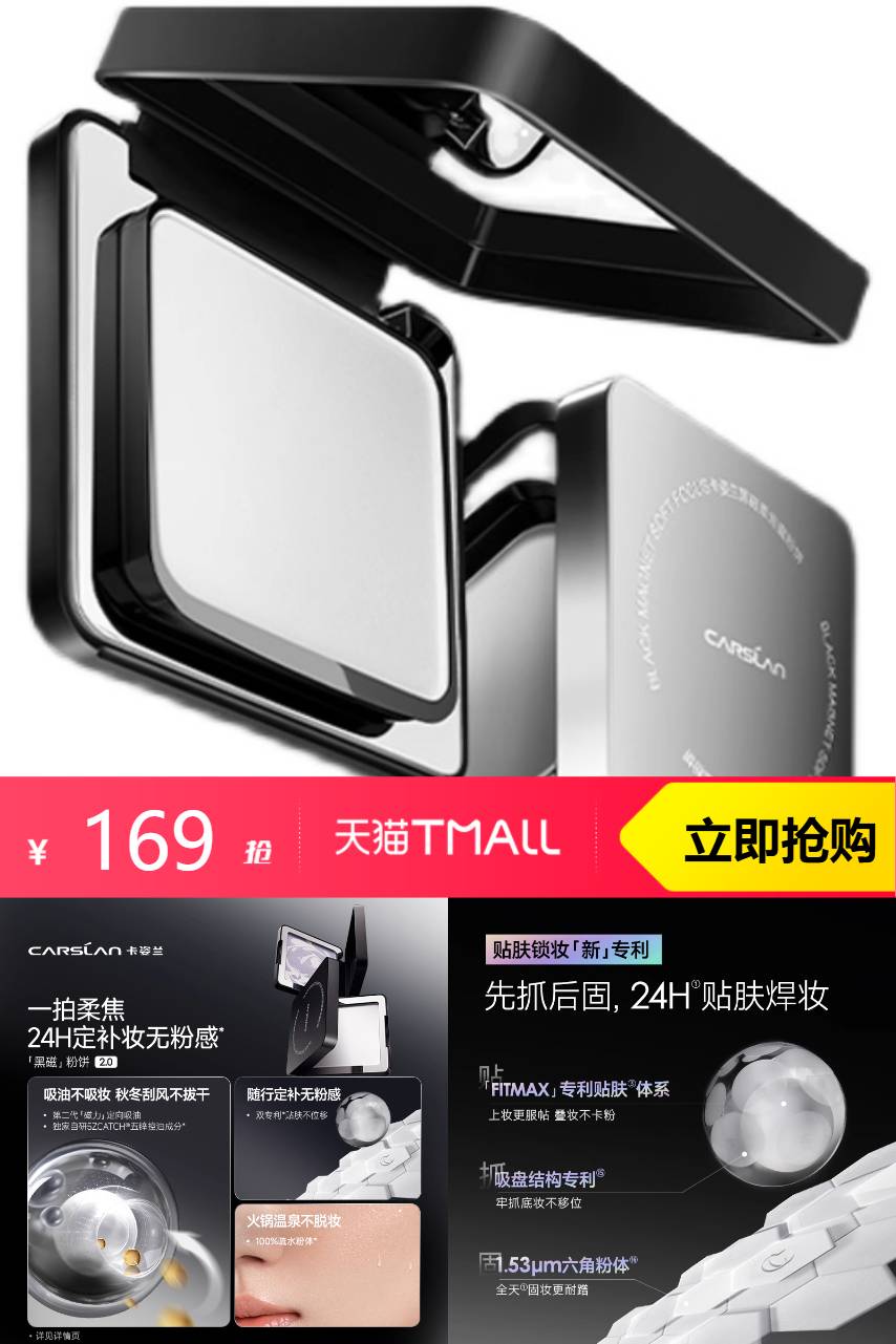【官方立减50元,凑店铺400-70元,消费券9折,淘金币16.57元,买即赠黑磁粉扑x1;直播间下单送同版粉底液全色号试用装x1+黑磁散粉2.0常规版(透明色)1gx1+轻吻唇釉F021gx1】卡姿兰黑磁粉饼】卡姿兰黑磁粉饼,控油提亮定妆必备!轻薄便携,随时补妆!修黄提亮,补光不暗沉。一拍柔焦,全天定补妆无粉感。24H控油,脸颊不干,T区不油~