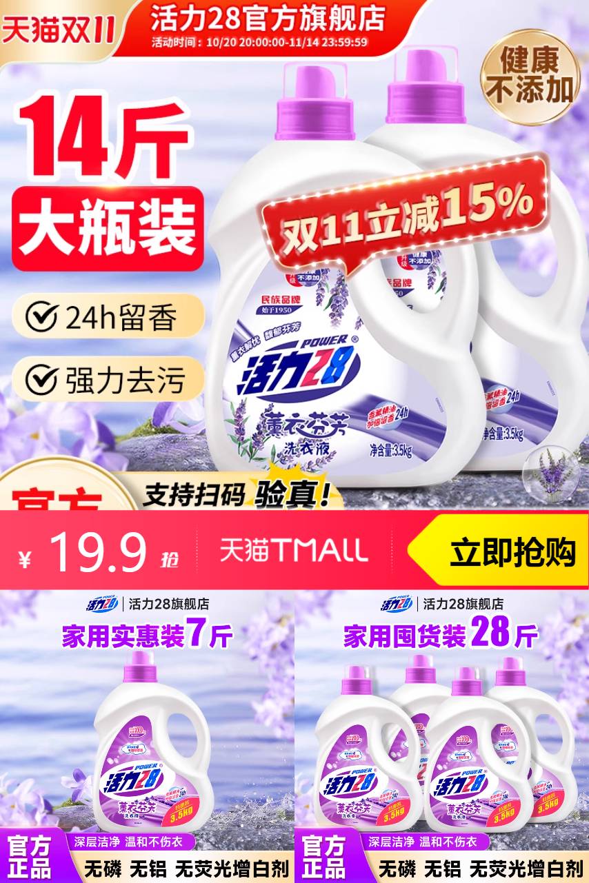 【原价29.9,官方立减6元,领券立减4元,叠加九折消费券17.91】活力28薰衣芬芳洗衣液温和不伤手持久留香深度清洁家用旗舰店正品。。。