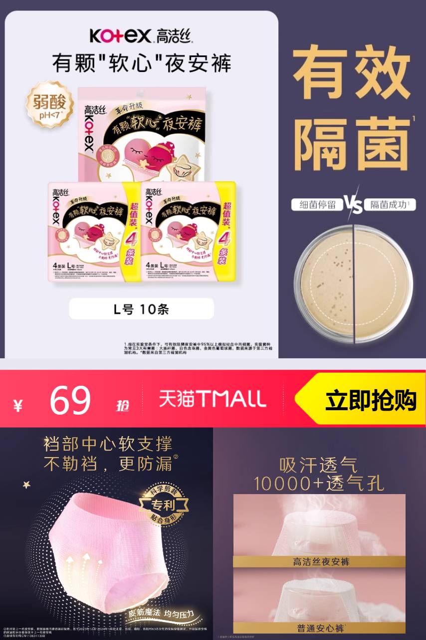 推荐:【69元任选3组】 高洁丝超薄软心夜安裤