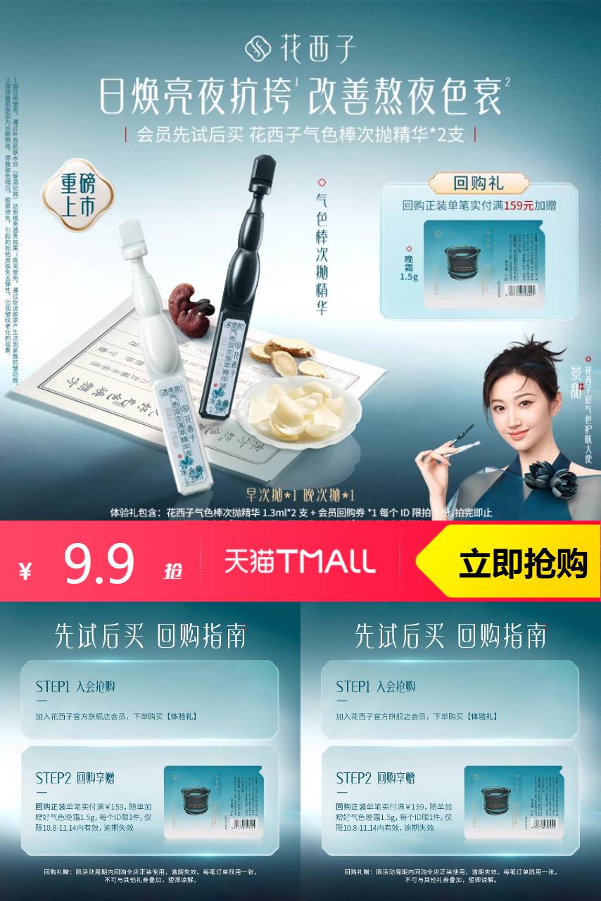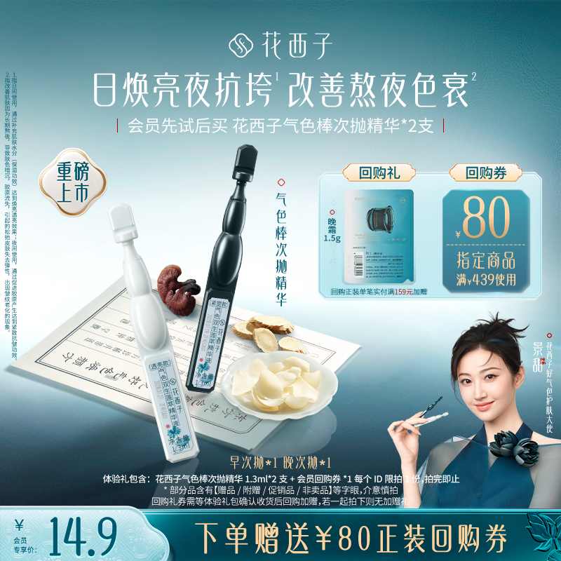【淘金币可减1.38元,天降红包0.37元,到手8.15元】体验礼包含:花西子气色棒次抛精华1.3ml*2支+80元会员回购券*1!