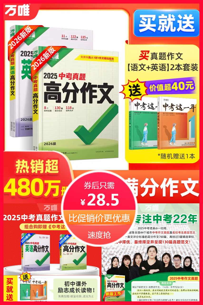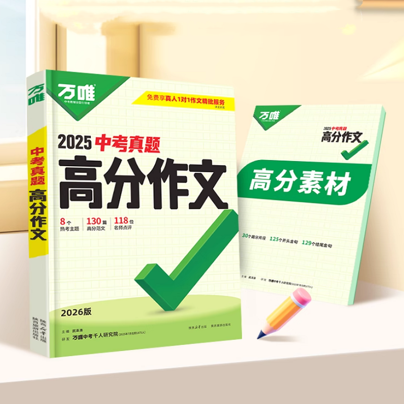 万唯中考】中考真题满分作文,严选2024中考真题范文,优中选优,保证整本书范文选材丰富,274条高分素.材积累,47节录制视频课,学生可无限次免费看,帮助学生理解,提高写作能力!
