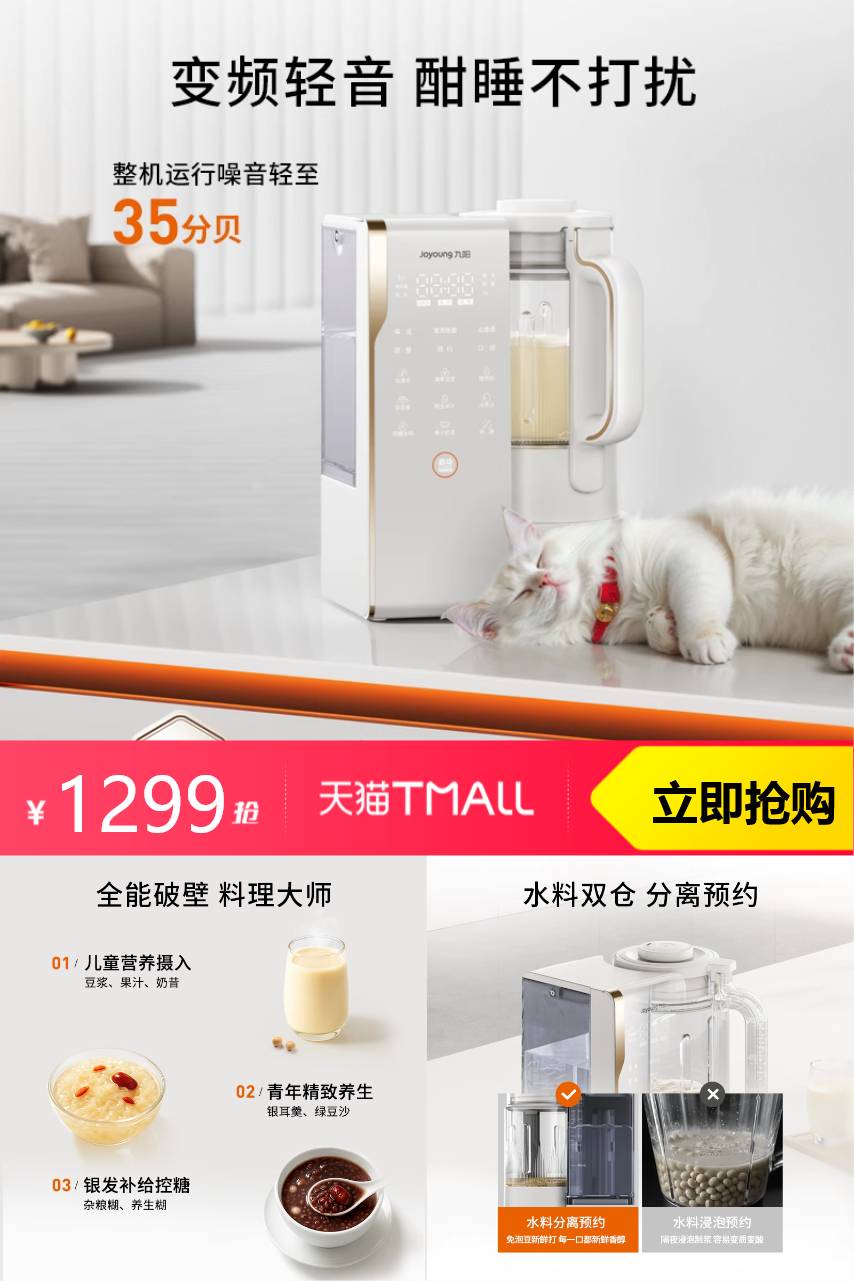 【有;凑88vip+淘金币+消费券+国补到手959.69】九阳变频轻音破壁机,家用全自动豆浆机搅拌料理机烹饪机新品B1U
