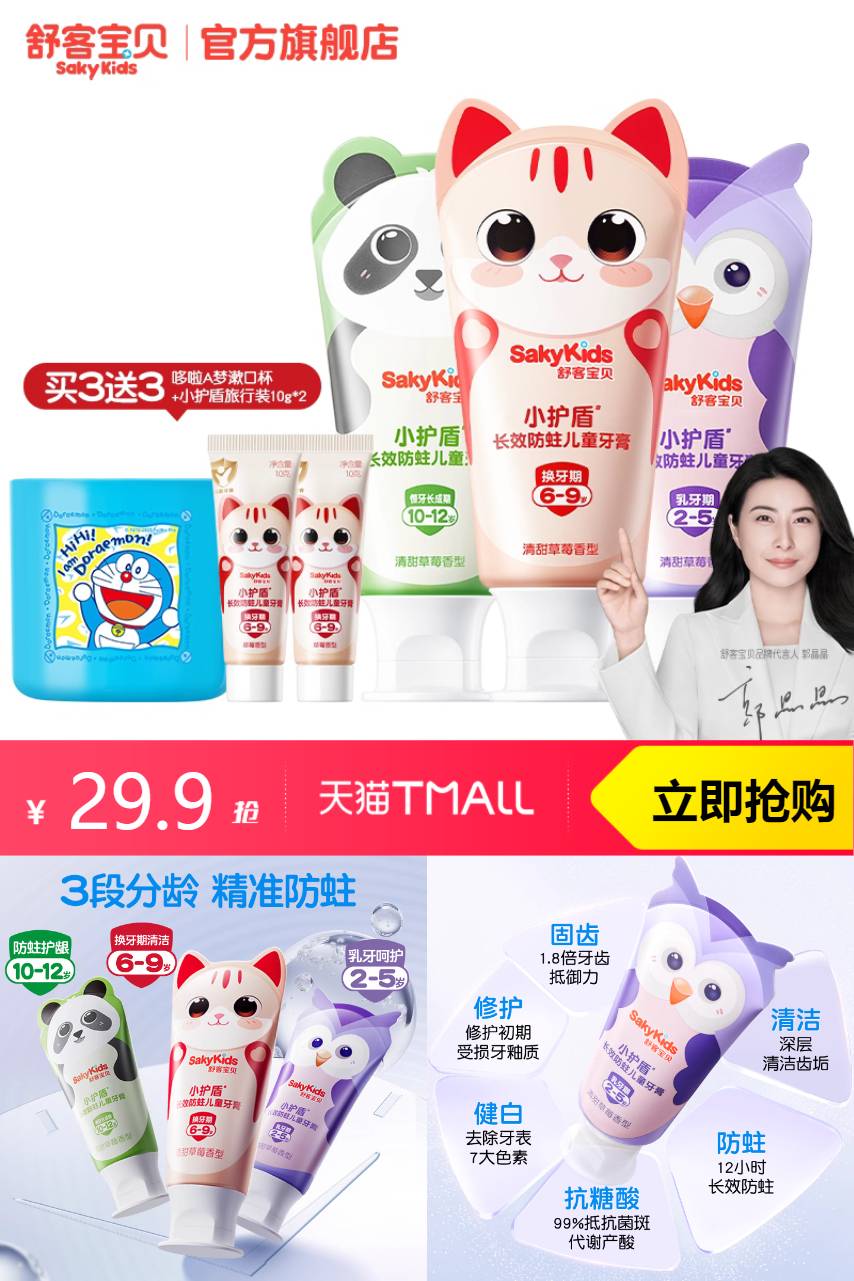 【30%,领两张券拍2件7.96折,淘礼金补贴3.06+淘金币2.59+消费券到手25.36】舒客宝贝长效防蛀小护盾儿童牙膏分龄,舒客宝贝小护盾系列!六效合一:固齿、修护、健白、抗菌斑、清洁深层、3段分龄精准防蛀,呵护宝宝牙齿整个童年!给宝贝就要用最...好的~
