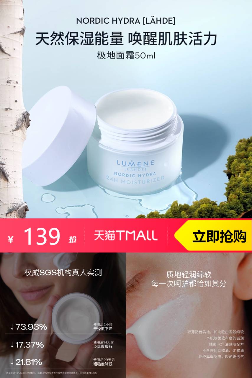 【优惠前288元-官方立减44元-105元券=139元,淘金币14.64元,到手124.36元】lumene优姿婷芬兰极地面霜,自然贴肤,0感润护24H 极地保湿”新方案。