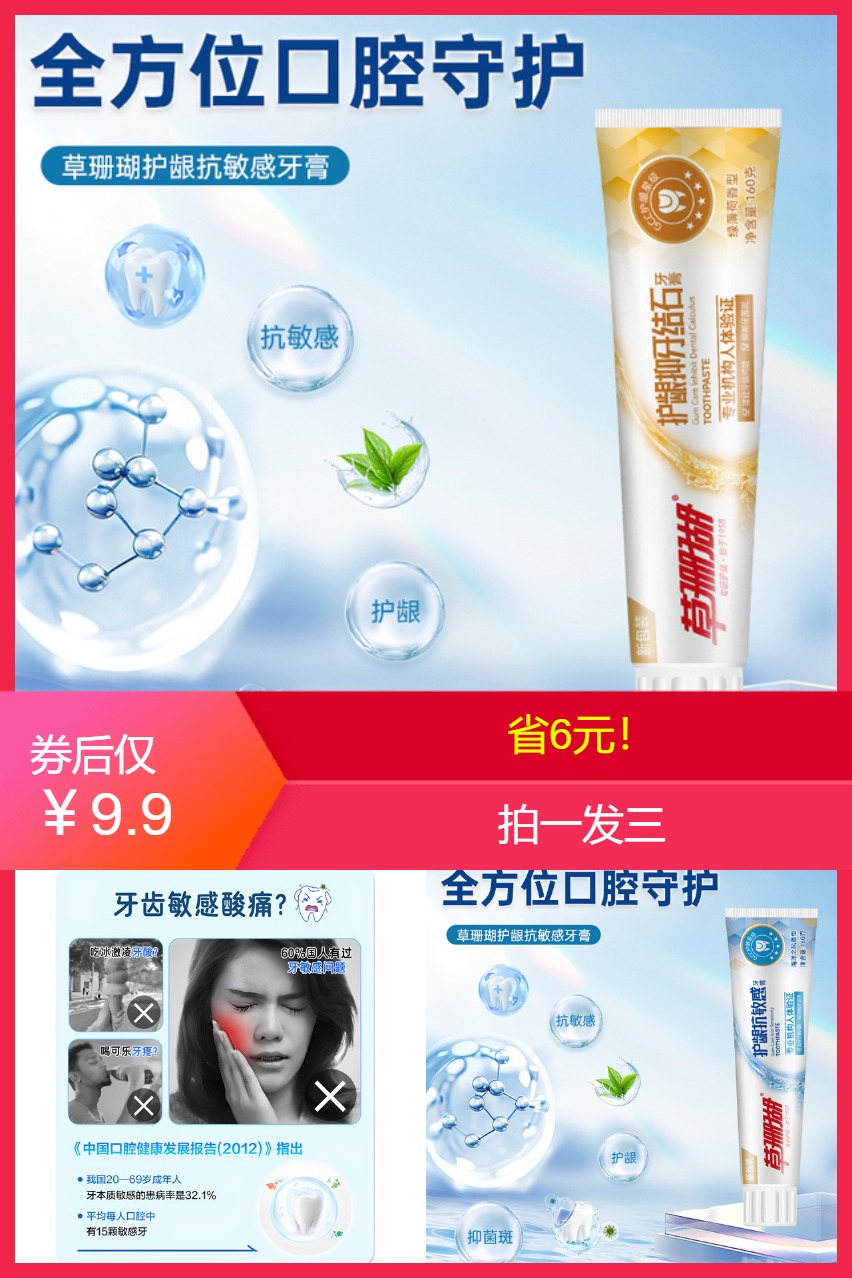 ⭕3支9.9元!草珊瑚草本消炎牙膏美白牙膏