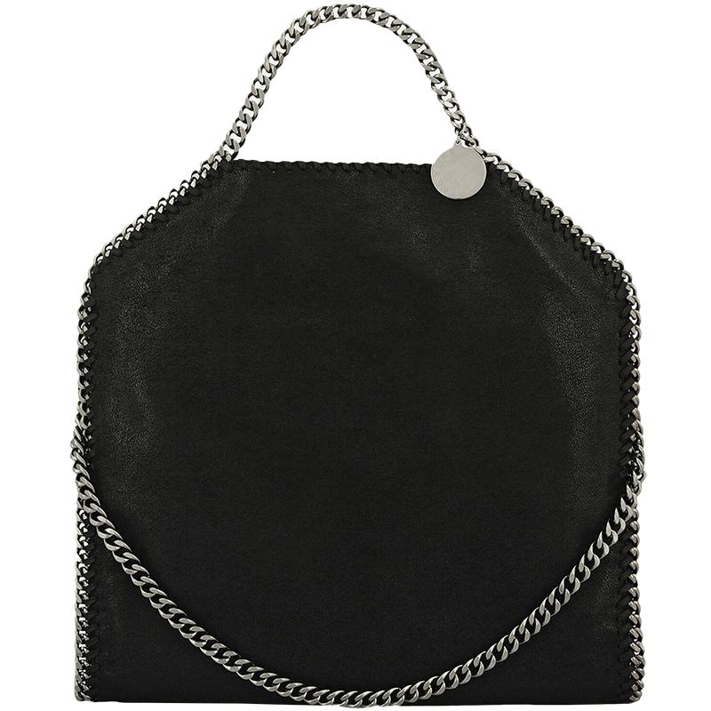 FALABELLA Stella McCartney链饰手提包,设计独特,兼具时尚与实用,让你在每一个休闲场合都能自信满满。包身尺寸为37x36x9cm,重量仅0.85kg,可折叠设计和多个夹层,让你轻松收纳各种物品。锁链式提把和磁扣闭合设计,不仅增添了时尚感,还确保了安全性。选用意大利生产的聚酯纤维材质,黑色外观和链条元素,更显欧美风格。