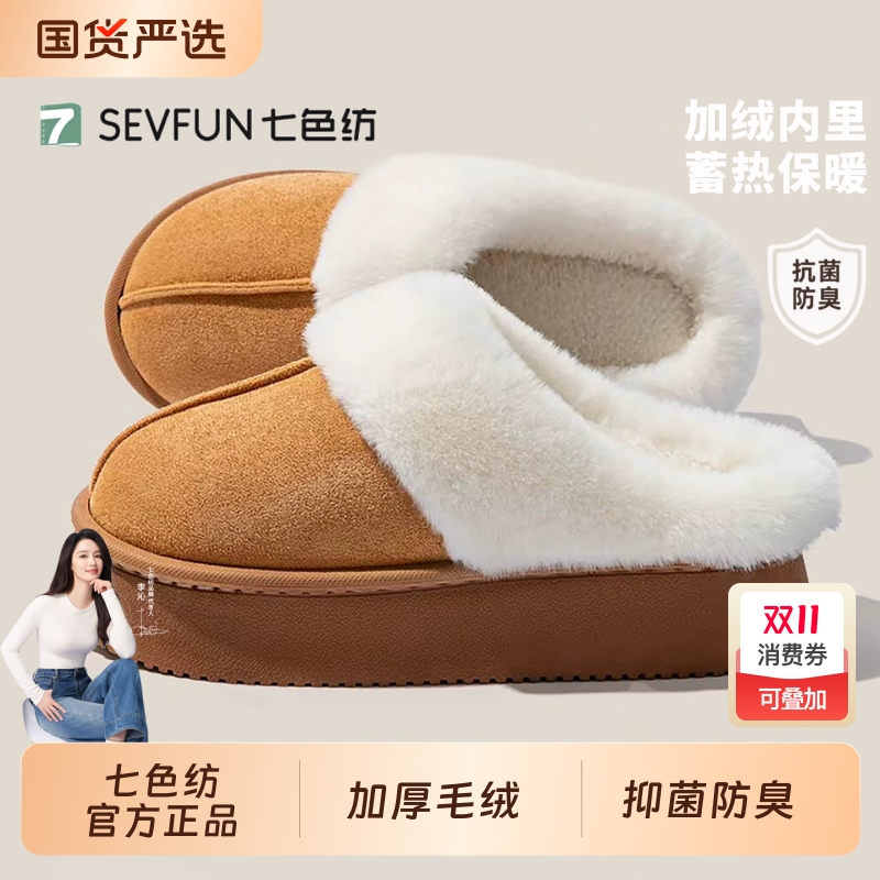 推荐:七色纺2025新款棉拖鞋女款冬季加绒防滑保暖室内家居情侣棉鞋男士