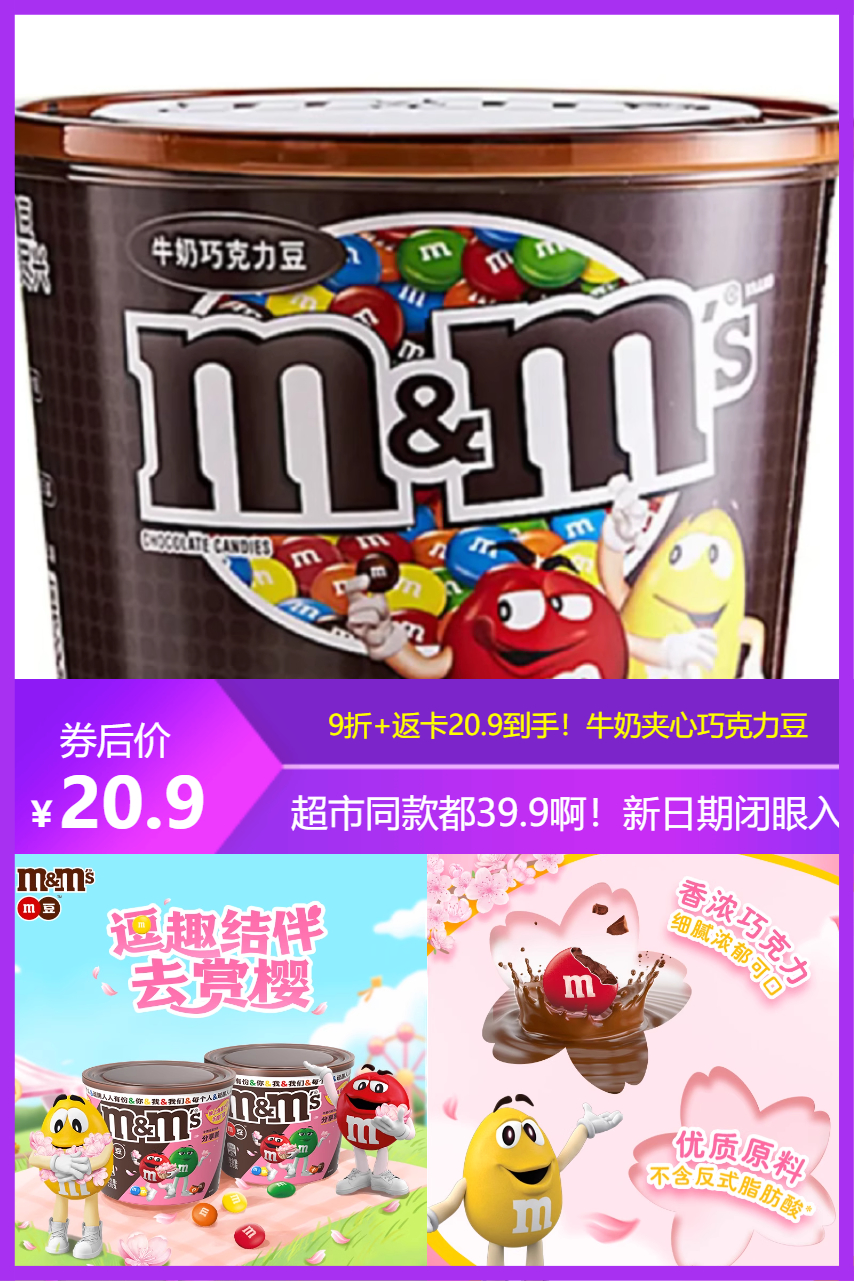 经典 M&M’S 来啦!270g 大桶装超满足,五彩糖衣裹着纯可可脂巧克力,奶香丝滑层次足。“只溶在口不溶在手”,追剧办公分享都合适,囤货正当时!