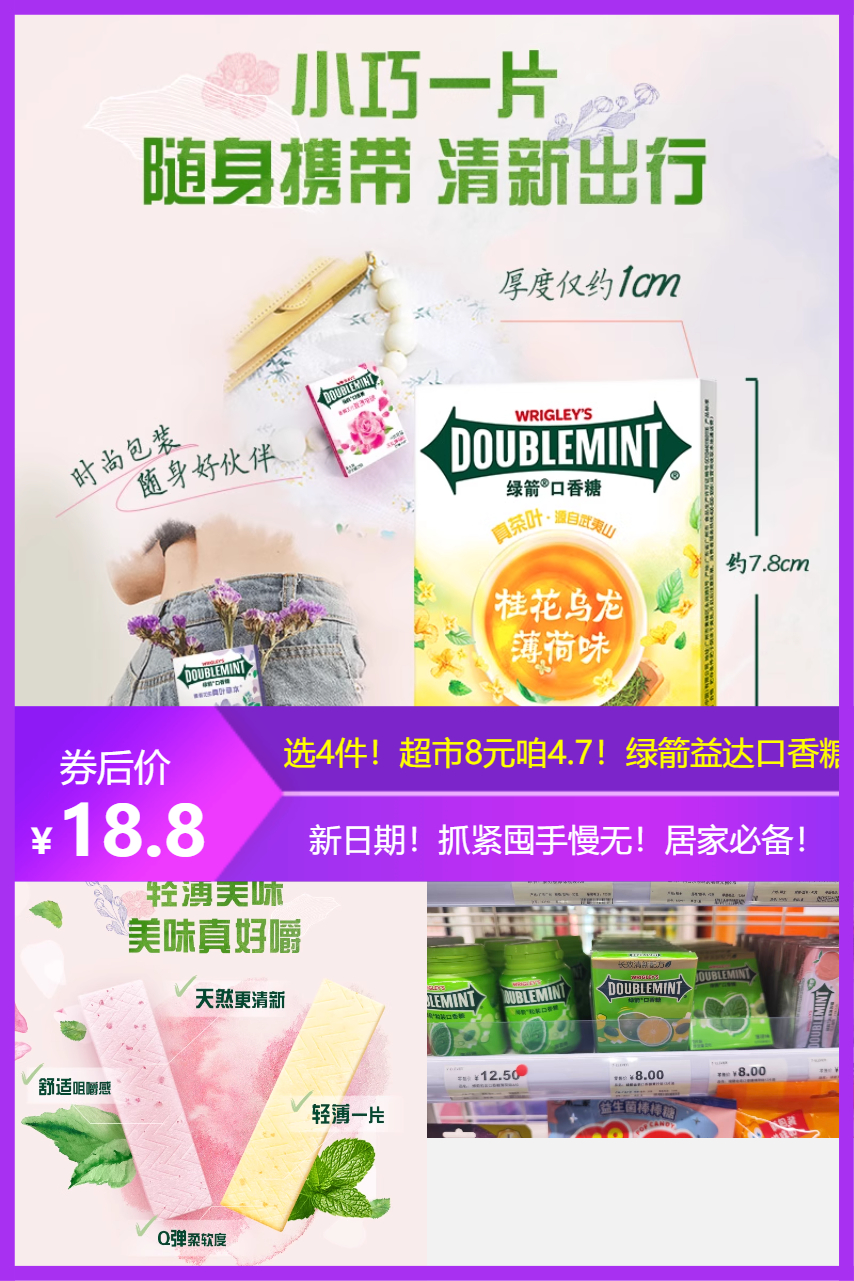 ⭕选4件!超市8元咱4.7!绿箭益达口香糖