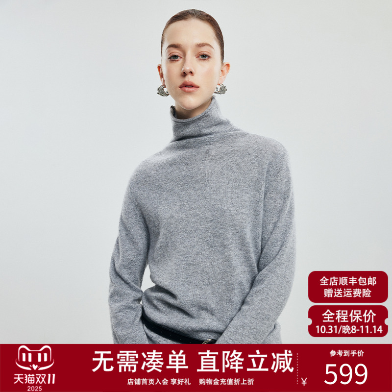 推荐:PALUOPO/帕罗高领打底上衣软糯针织套头毛衣秋冬新款纯山羊绒衫女