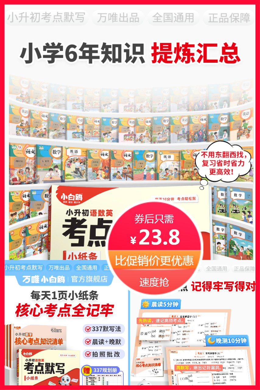 万唯小白鸥小升初语数英考点默写小纸条,2026新书知识大盘点,1-6年级语、数、英都有,配备视频讲解,阶段性测试+真题训练!家里有娃的抓紧怕~