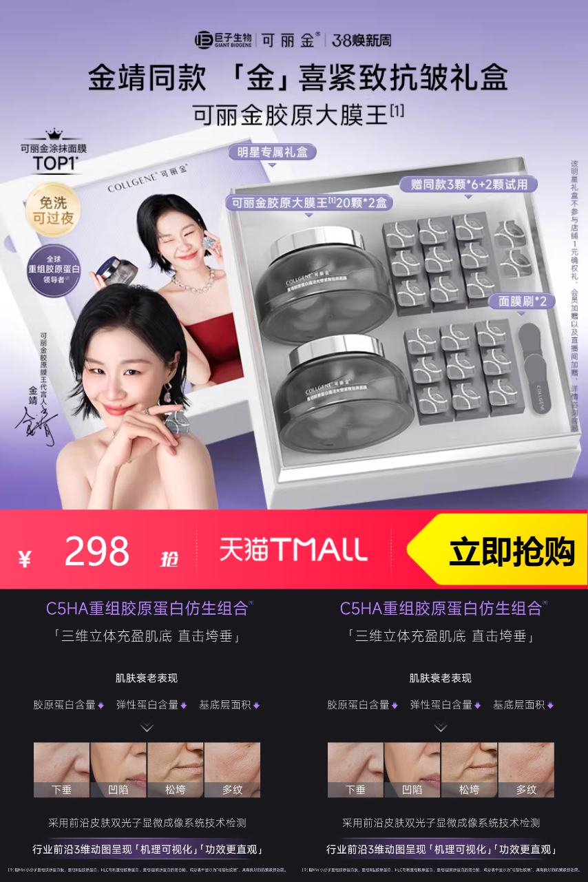推荐:正式开售】金靖同款可丽金胶原大膜王63