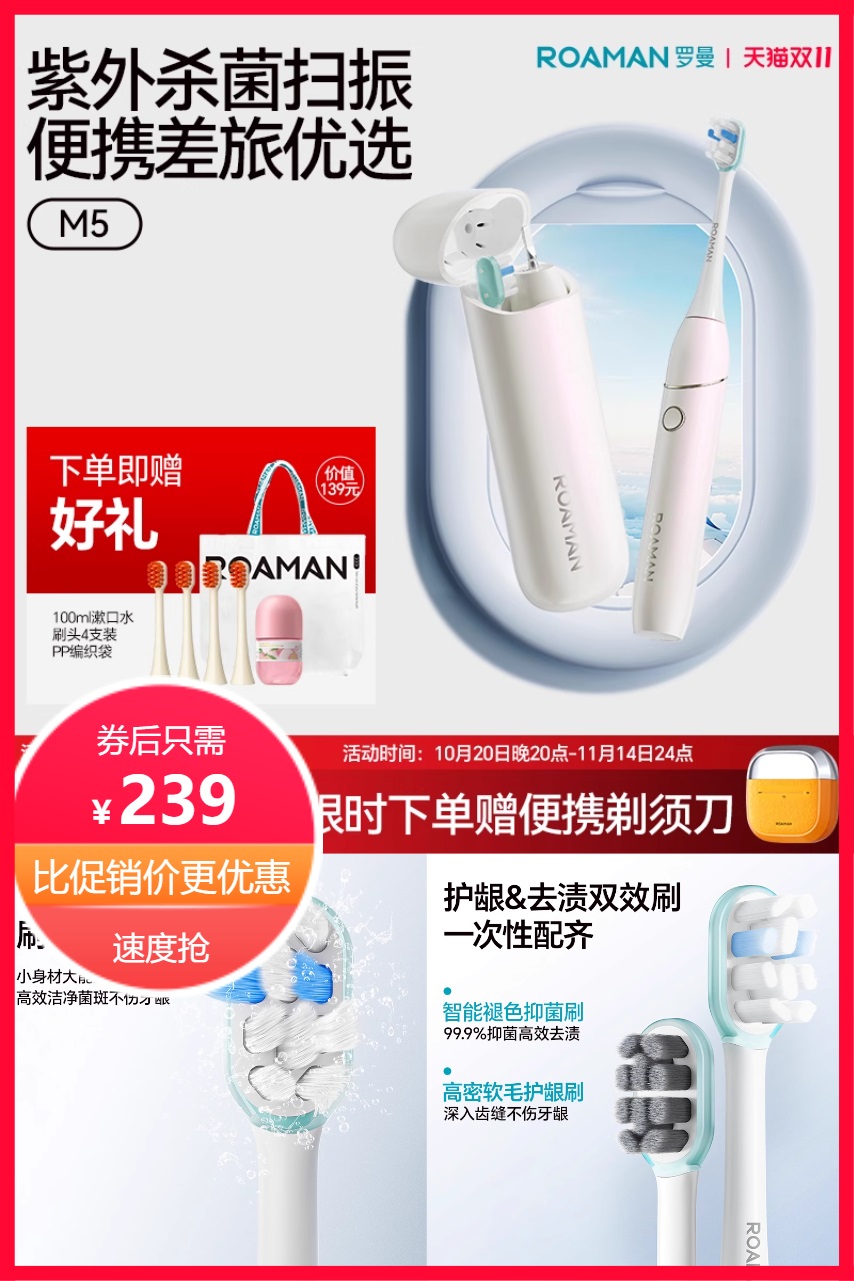 ⭕罗曼M5扫振电动牙刷【首单等约179】