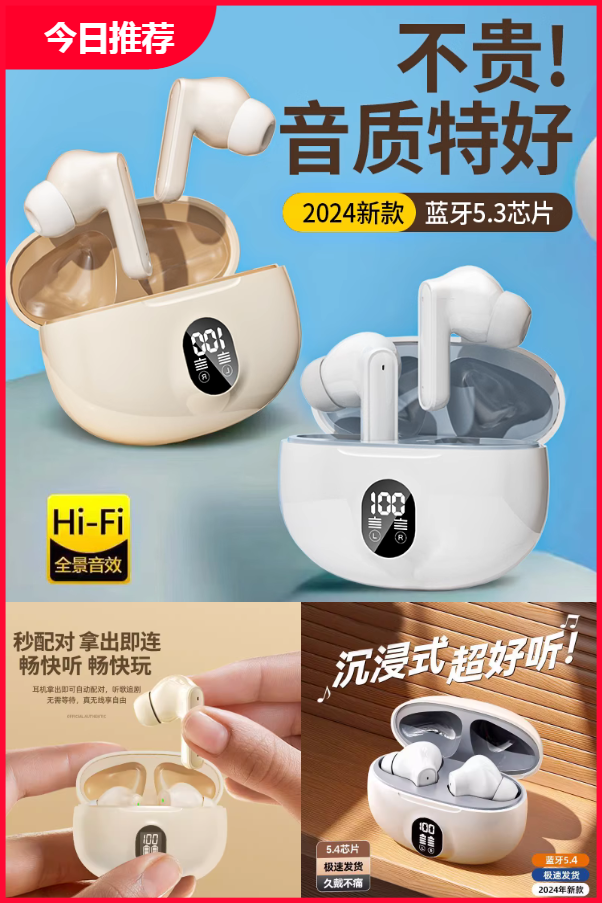 新款无线蓝牙耳机。旗舰双核5.4蓝牙芯片,杜比全景环绕音效,超长待机续航,ENC智能降噪,舒适轻巧不痛耳,IPX6级防水汗,游戏低延迟,Type-c极速闪充,智能指纹触控。耳机拿出即可自动配对,听歌追剧无需等待,真无线享自由。
