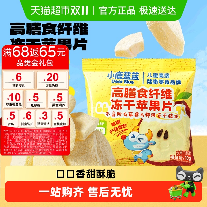 小鹿蓝蓝高膳食纤维冻干苹果片冻干水果片儿童零食品牌