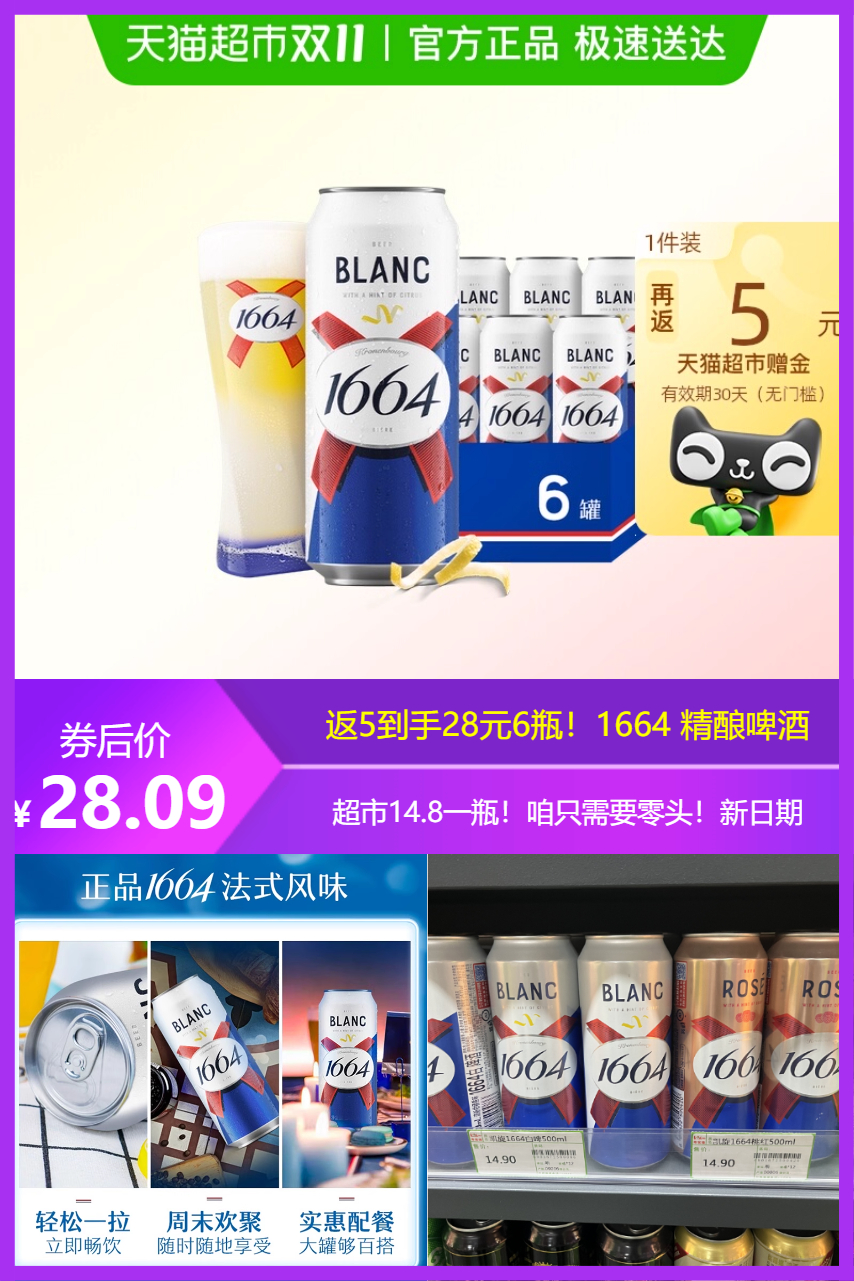【淘金币+88vip+猫超+50-5优惠券+平台券+返5元猫卡到手28.09】1664精酿,500mlx6罐分享装来袭!泡沫绵密清爽。不管聚会小酌还是搭配美食,都能解锁法式优雅,一口沦陷纯粹麦香
