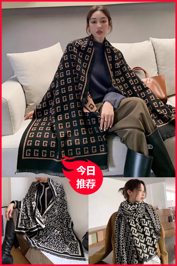 简约字母设计,彰显品味!时尚元素,双面质感,舒适又显气质!百搭披肩,优雅随行!